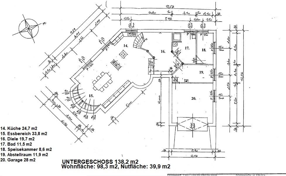 Untergeschoss 138 m2: Diele, Küche mit EBK, Essbereich, Speisekammer, Bad, 2