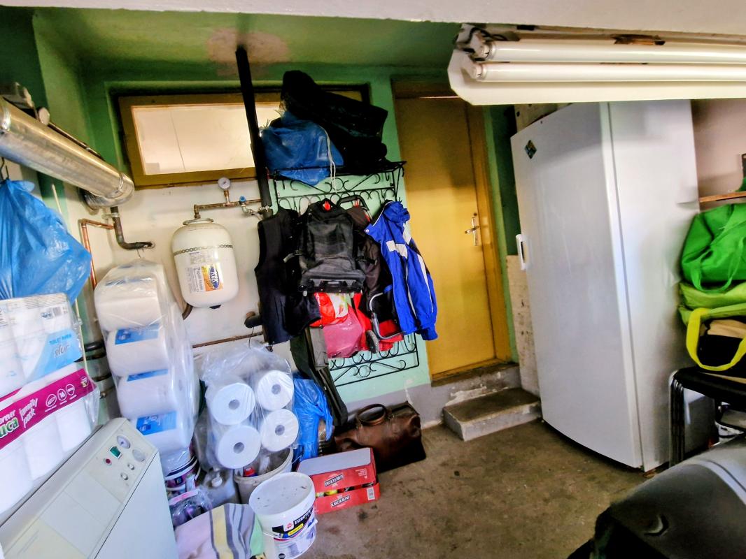 Terrasse, Heizraum, Abstellraum und eine Garage.