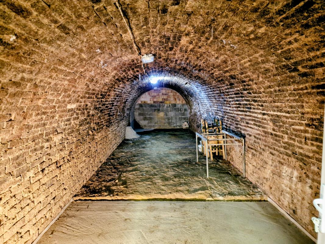 man in einen 45 m² großen Weinkeller mit originalen Ziegelwänden. Dank der im
